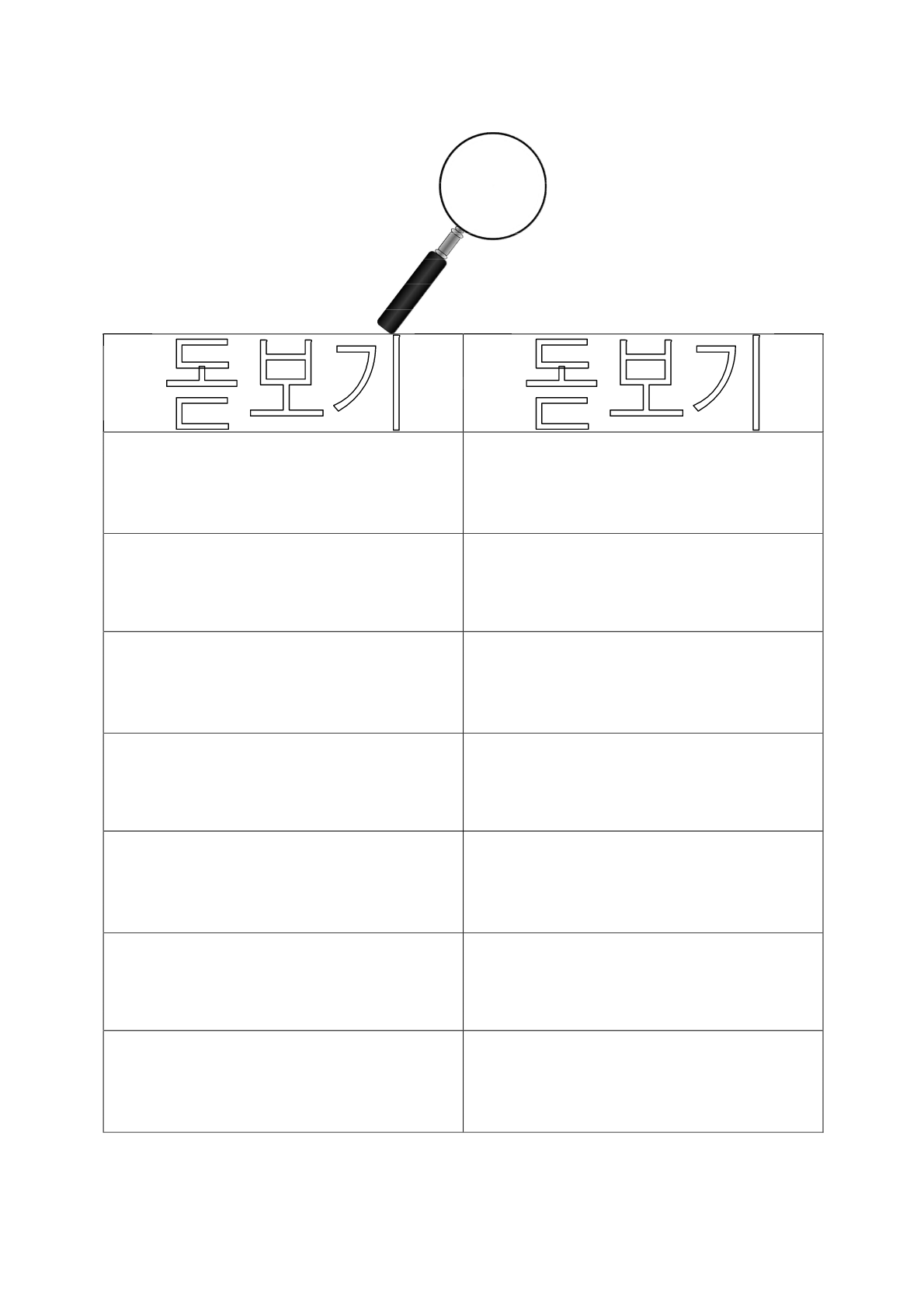 한글 단어 따라 쓰기 [돋보기, 구급차, 개미, 군인, 도끼, 농구, 곰, 나비, 낙타, 당근, 고양이, 도시, 구름, 냄비, 경찰, 게, 개, 돌고래, 당나귀, 도넛, 드럼, 독수리, 귀, 굴착기, 눈, 가족, 감자튀김, 개구리, 기린, 골프, 거위, 기타, 권총, 닭, 김밥, 노트북, 고기, 나침반, 간호사, 고추, 돼지, 경찰차, 너구리, 달리기, 가위, 드라이버, 갈매기, 다람쥐, 딸기, 고구마, 그네, 도둑, 기차, 거북, 고래, 겨울, 거울